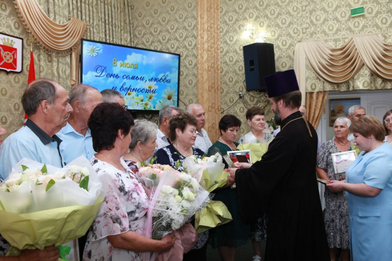 Традиционно в этот день в Октябрьском районе чествуют семейные пары, которые прожили вместе много лет и достойно воспитали детей и внуков. В этом году в зале присутствовали 14 замечательных семейных пар, представляющих как городское, так и сельские поселения района.