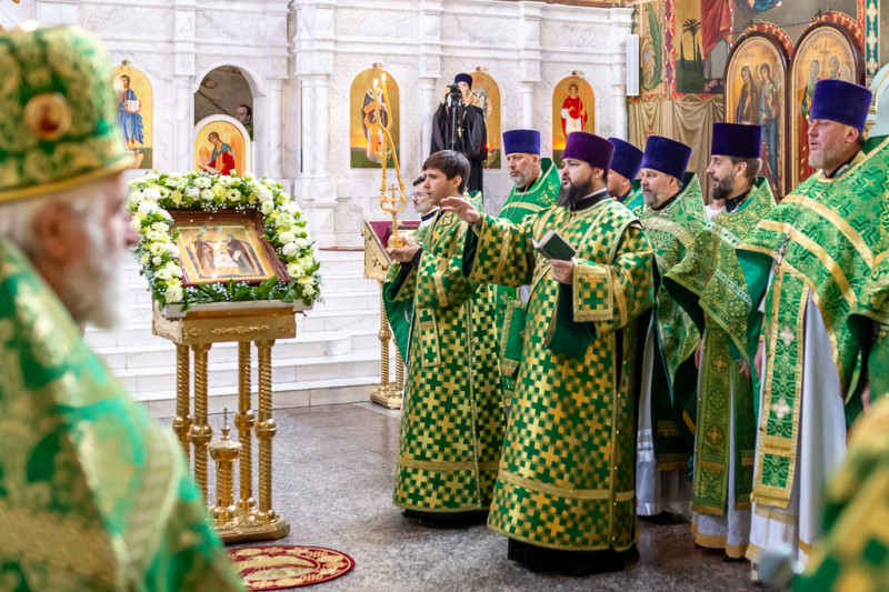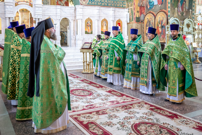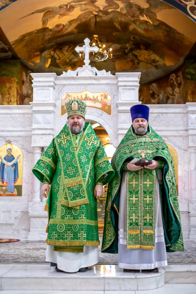 Перед образом святых преподобных отцов Сергия и Германа Валаамских, после Божественной Литургии, духовенство совершило молебен.