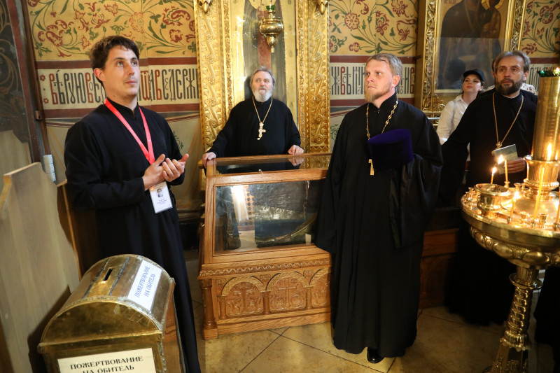 Епископ Симон совместно с духовенством совершил молебен у святых мощей игумена Земли Русской в Троицком соборе Свято-Троицкой Сергиевой Лавры.