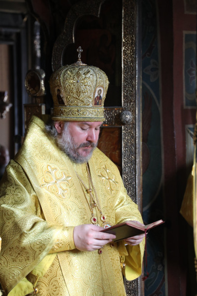 За Литургией владыка Симон совершил молитву о Святой Руси и причастил паломников Святых Христовых Тайн.