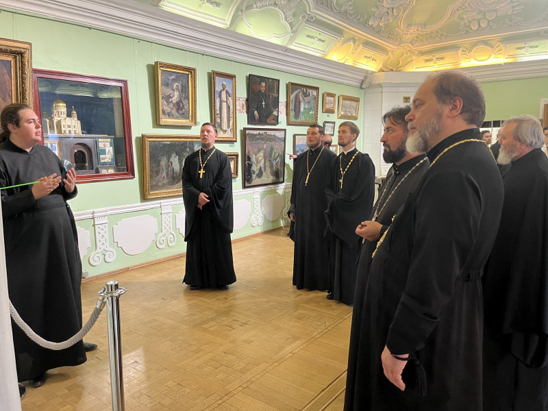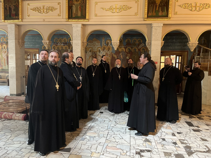 Для паломников из Шахтинской епархии была организована экскурсия по Церковно археологическому кабинету Московской духовной академии, носящему имя Святейшего Патриарха Алексия I и имеющему в своем собрании коллекцию предметов церковной старины, иконописи, религиозной живописи, графики, нумизматики, рукописных и старопечатных книг.