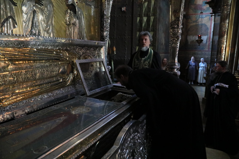 После братского молебна у мощей преподобного Сергия Радонежского, «игумена Земли Русской», епископ Шахтинский и Миллеровский Симон в сослужении духовенства совершил Божественную Литургию в Троицком соборе Свято - Троицкой Сергиевой Лавры.