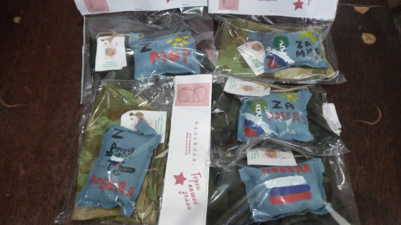 При очередной встрече дети передали сестрам милосердия для участников специальной военной операции балаклавы, сделанные своими руками.