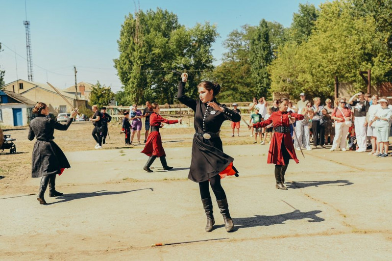 Гостям показали конюшню, рассказали о лошадях, показали как их седлать, познакомили с образцами оружия. Коллектив из г. Шахты представил выступление, в котором показал умение фланкировки саблями. Подопечные покатались на лошадях и покормили их, сделали фотографии. Казаки накормили всех приготовленным на костре казачьим блюдом – шулюмом и рассказали про станицу. Затем гости посетили местную школу, где ребятам провели экскурсию, посетили школьный музей.