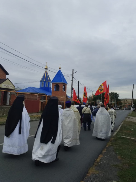 Духовенство Нижнедонского благочиния с прихожанами храмов Октябрьского района, традиционно, в день памяти одного из самых известных чудес Архангела Михаила бывшего в Хонех, чтобы почтить его и вспомнить историю о силе молитвы и Божьей помощи, совершили торжественное шествие к Часовне Архангела Михаила п. Каменоломни.