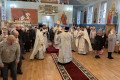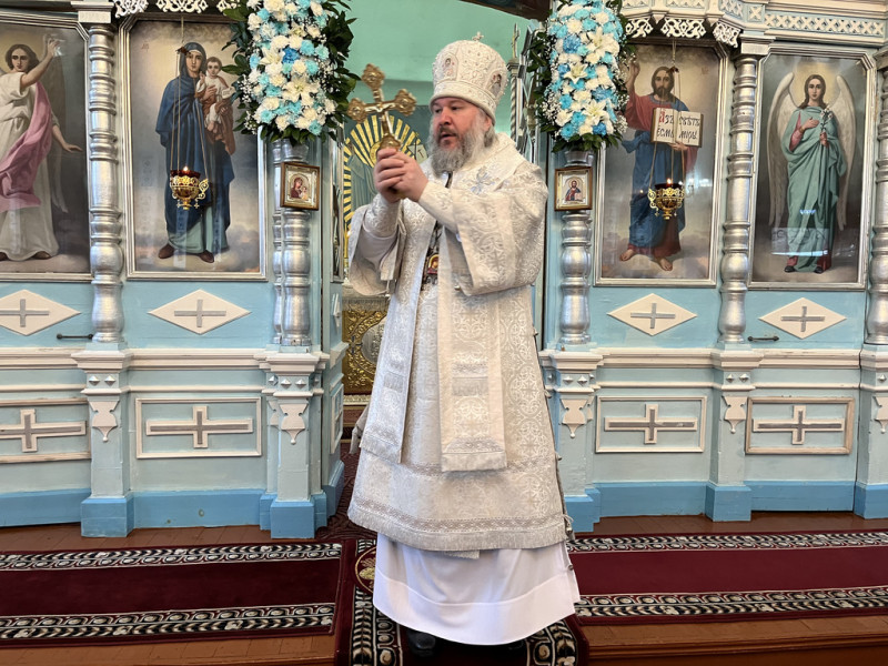 По завершении Литургии духовенство и прихожане во главе с архипастырем совершили крестный ход, прославляя небесного покровителя храма Архистратига Божия Михаила.