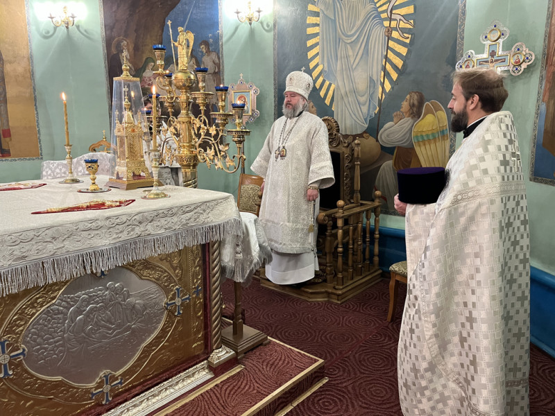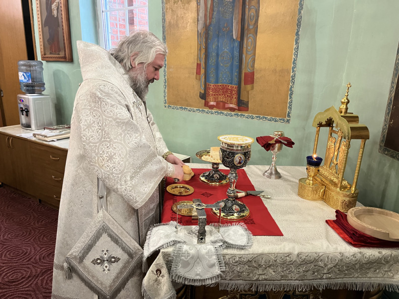 Его Преосвященству сослужили благочинный приходов Нижнедонского церковного округа, настоятель храма протоиерей Сергий Яценко; клирик храма Архистратига Михаила иерей Максим Коваленко и диакон Трофим Осяк.