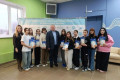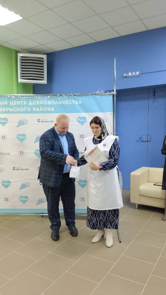 Заведующий сектором по молодежной политике и туризму Мария Хмелёва посвятила новых участников в волонтерское движение «Пульс района", вручив им знаки.