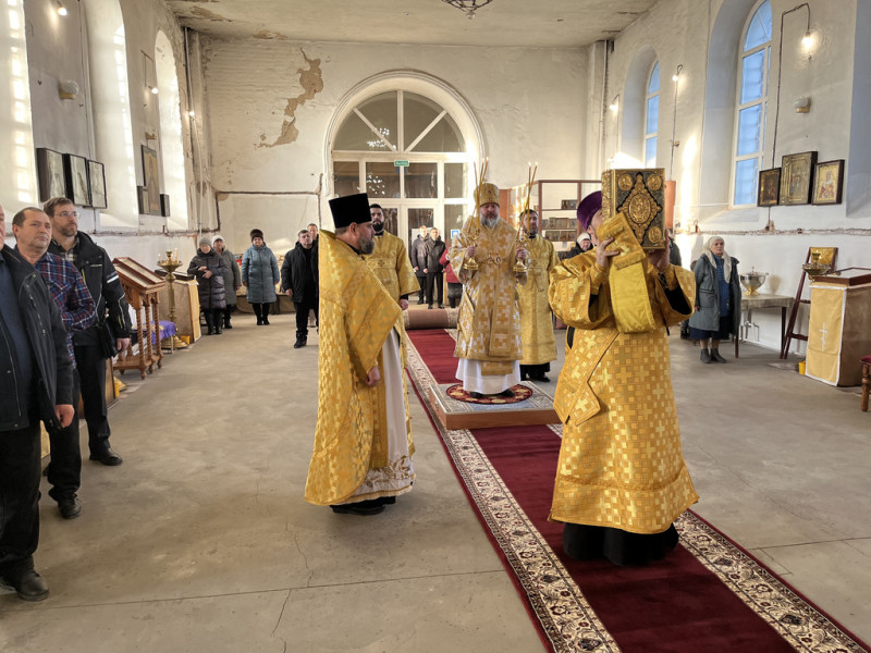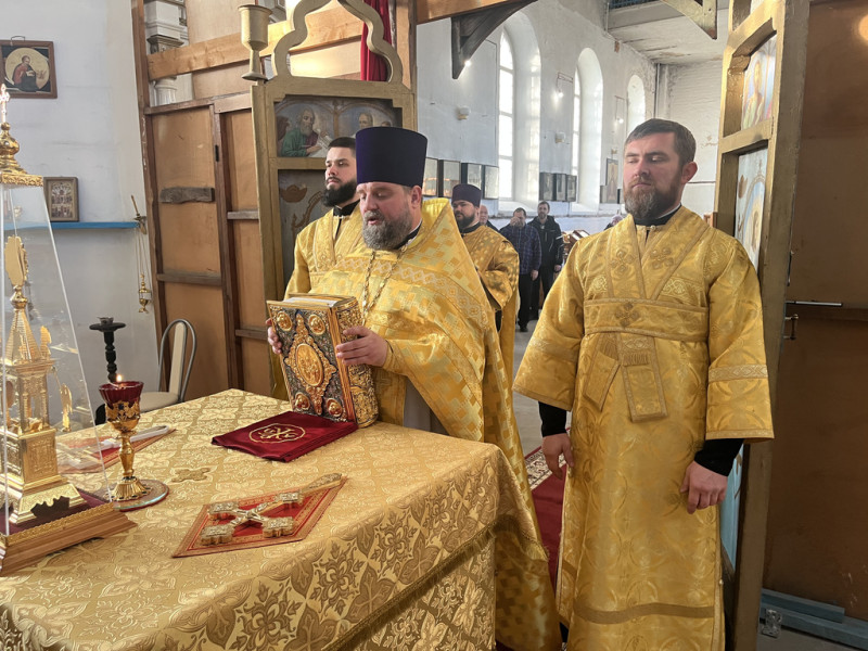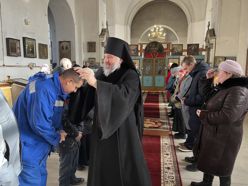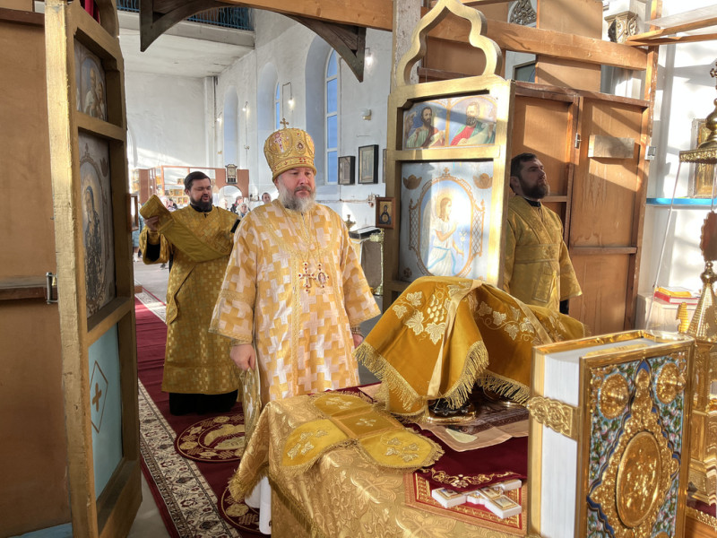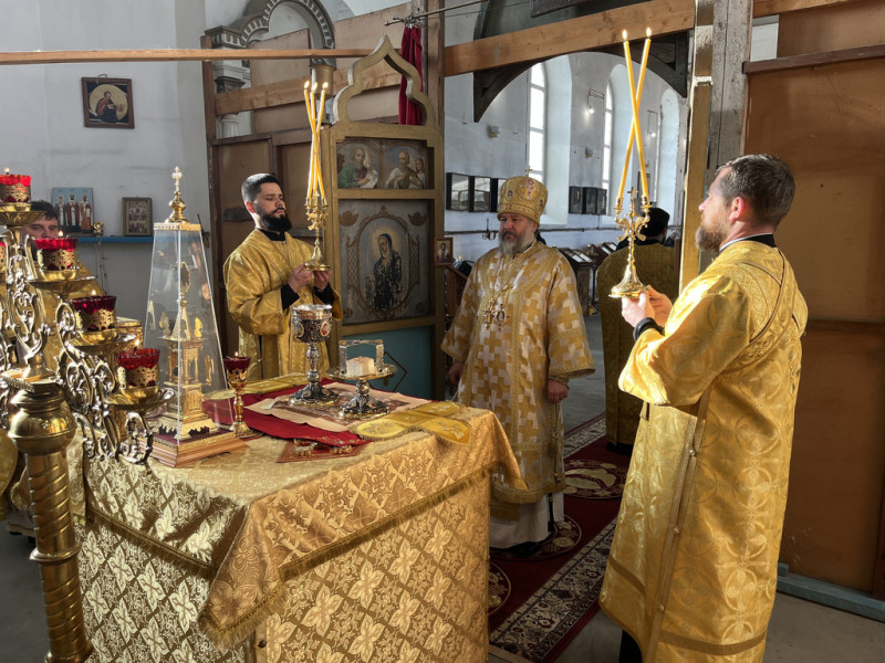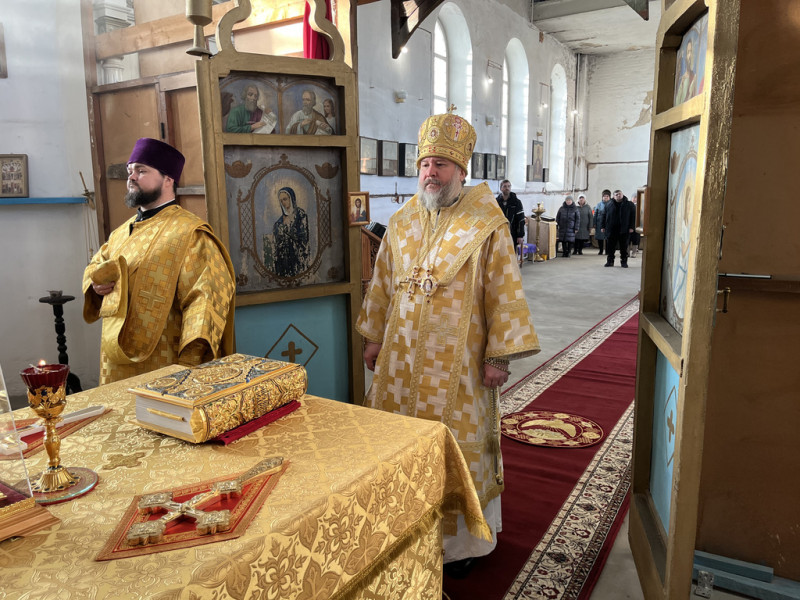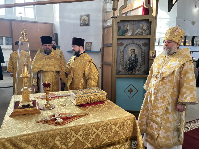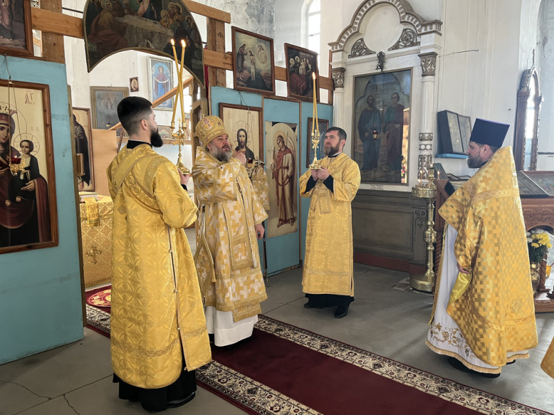 Вместе с архиереем молились настоятель храма иерей Александр Шапкин, диакон Трофим Осяк и прихожане.
