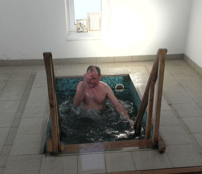 Все желающие жители Октябрьского района и гости, с молитвой совершили традиционное троекратное погружение в освящённую воду для телесного укрепления.
