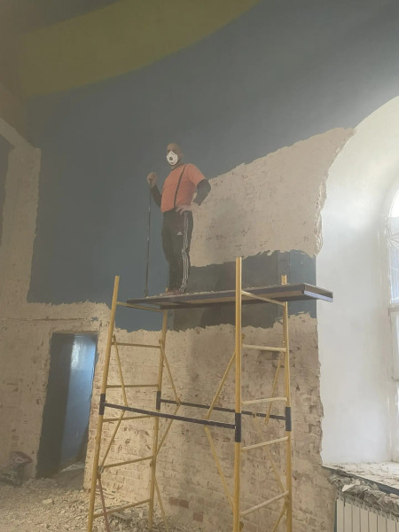 На данном этапе ведётся подготовка к оштукатуриванию одного из приделов алтаря. Активное участие в работах вместе с прихожанами принимает настоятель храма протоиерей Андрей Поздняков.