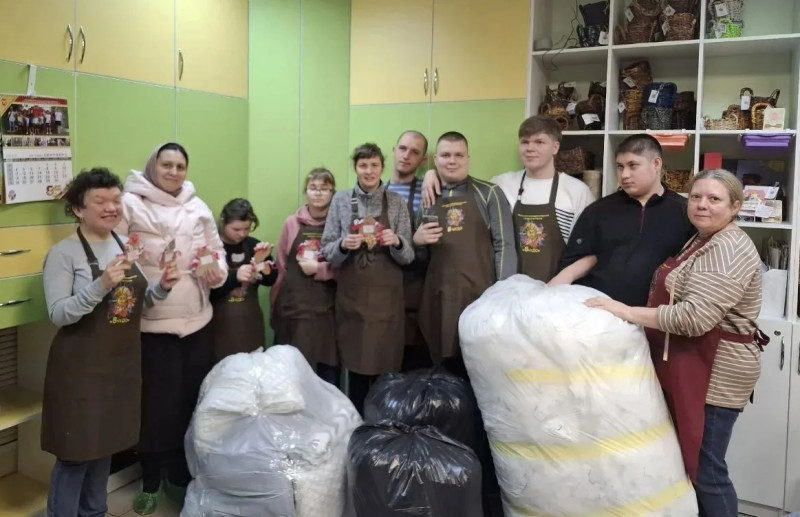 Воспитанники детской творческой мастерской для детей-инвалидов «Волшебный стежок» Октябрьского района вносят свой вклад в поддержку бойцов, находящихся на лечении. Мастерская является одним из направлений социальной организации детей-инвалидов «Мир один для всех», которая занимается адаптацией детей с инвалидностью, людей с отклонениями в интеллектуальном развитии и психическими заболеваниями в современное общество.