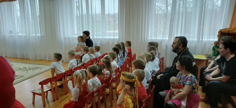 Светлая седмица — это время всеобъемлющей радости, которой особенно хочется делиться с детьми. По сложившейся доброй традиции настоятель храма великомученика Георгия Победоносца поселка Новозарянский Октябрьского района иерей Сергий Липень совершил пастырский визит к воспитанникам детского сада «Теремок».