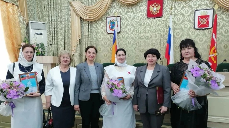 По решению администрации Октябрьского района за добросовестный труд и помощь в реализации социально значимых проектов Благодарственные письма получили: руководитель гуманитарного склада «Благо Дарю» при храме Архистратига Михаила (п. Каменоломни), сестра милосердия Валентина Гаркушина, а также руководитель общественной волонтерской группы «Добро», сестра милосердия Татьяна Онищук.