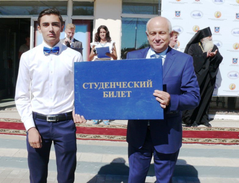 По традиции, ректор вручил поступившим в этом году студентам символические «Ключ знаний», «Студенческий билет» и «Зачетную книжку».