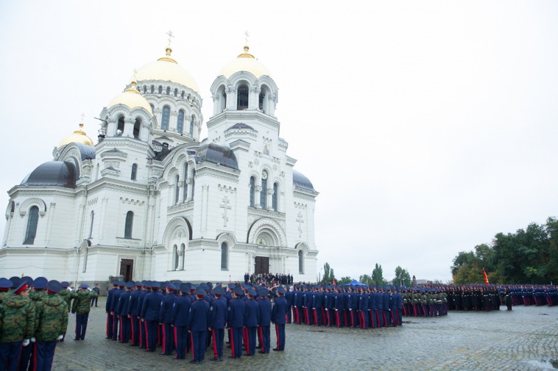 На площади Ермака перед Патриаршим Вознесенским войсковым собором в Новочеркасске собрались казаки и кадеты из Ростовской, Волгоградской и Самарской областей, Республики Калмыкия, представители аппарата полпреда Президента России в ЮФО и правительства Ростовской области, священнослужители, многочисленные гости.
