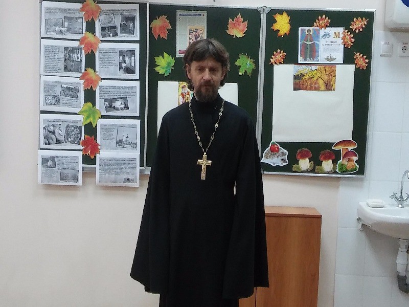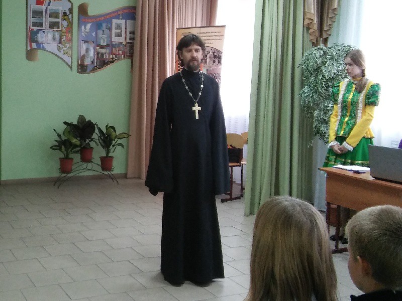 Священник так же принял участие в открытом уроке, на котором рассказал ученикам о истории праздника и его значении для православных христиан.