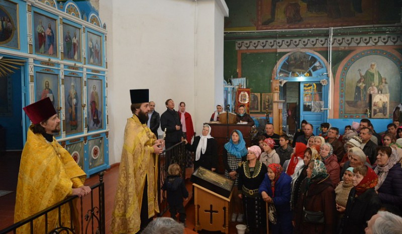 Епархиальный пресс-секретарь и древлехранитель И.Г. Шарков поздравляя настоятеля прихода с престольным праздником, поблагодарил его за активное участие в подготовке епархиальной выставки-форума "Евлогии Святой Земли и Афона", проходящей в Духовно-просветительском центре Покровского кафедрального собора г. Шахты. Приход предоставил на выставку ценные экспонаты.