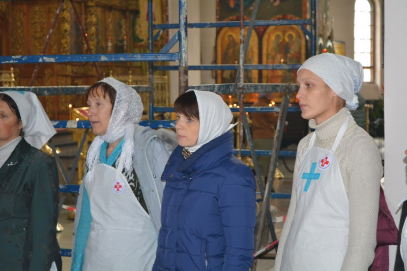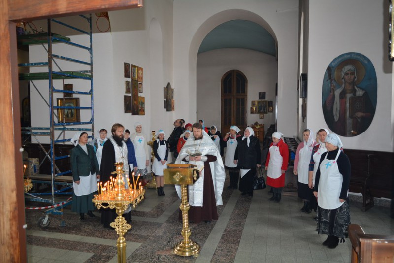 Молебен для сестер милосердия совершил штатный клирик собора протоиерей Роман Бирюков.