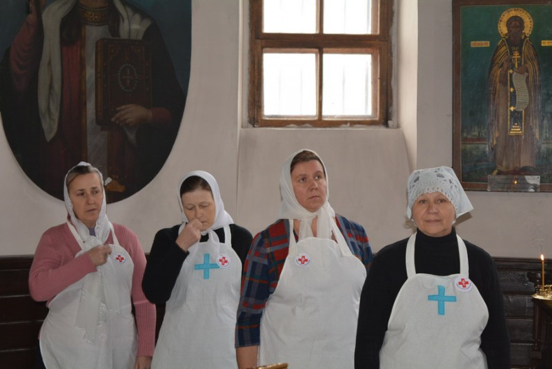 Сестры милосердия Марфо-Мариинского сестричества ,действующего при храме Архангела Михаила п. Каменоломни Октябрьского района Нижнедонского благочиния, приняли участие в молебне и приложились к иконе с мощами преподобноисповедника Сергия (Сребрянского), находящейся в Покровском кафедральном соборе г. Шахты.