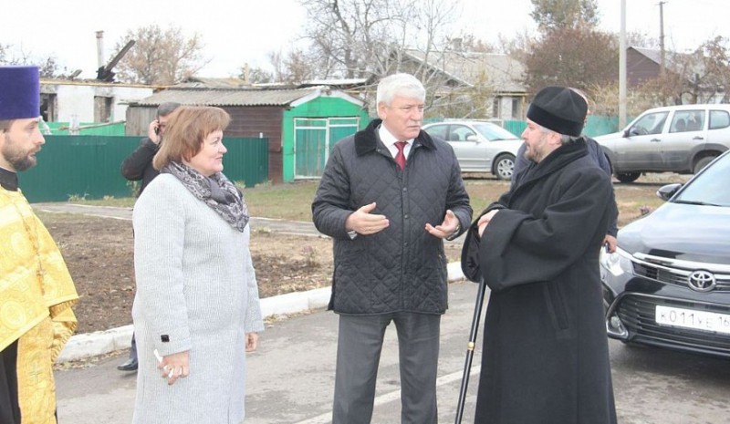 В.Н.Василенко поздравил всех с важным этапом работ по созданию храма и пожелал, чтобы это место стало в посёлке центром возрождения духовности.