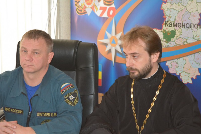 В видеоконференции принял участие благочинный приходов Нижнедонского округа протоиерей Сергий Яценко, духовно окормляющий Федеральное Государственное Учреждение «68 Пожарная часть государственной противопожарной службы МЧС России по Ростовской области» п.Каменоломни Октябрьского района.