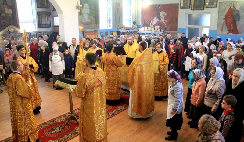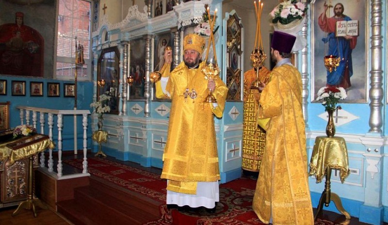 Во время богослужения епископ Симон вознес молитву о мире и преодолении междоусобной брани на Украине.
