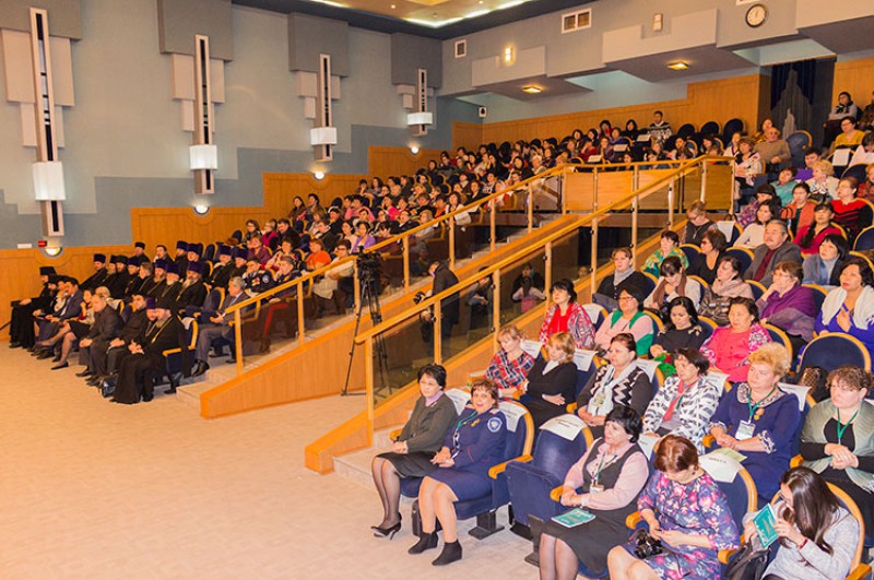 С докладами выступили: администратор Центрального хурула «Золотая обитель Будды Шакьямуни» Отхон-лама, помощник председателя Духовного управления мусульман Калмыкии Аслудин Калабегов, министр образования и науки Республики Калмыкия Николай Манцаев, ректор Калмыцкого республиканского института повышения квалификации работников образования, заслуженный учитель Российской Федерации, кандидат педагогических наук Лилия Мунчинова, директор Калмыцкого филиала Московской академии экономики и права Наталья Курепина, начальник отдела дошкольного, дополнительного образования и воспитания Управления образования Администрации города Элисты Эрика Дарминова и вице-президент Ассоциации классов казачьей направленности при отделе религиозного образования и катехизации, руководитель республиканского методического объединения учителей Основ православной культуры, учитель начальных классов МБОУ «Русская национальная гимназия им. преподобного Сергия Радонежского» г. Элисты Валентина Киевская.