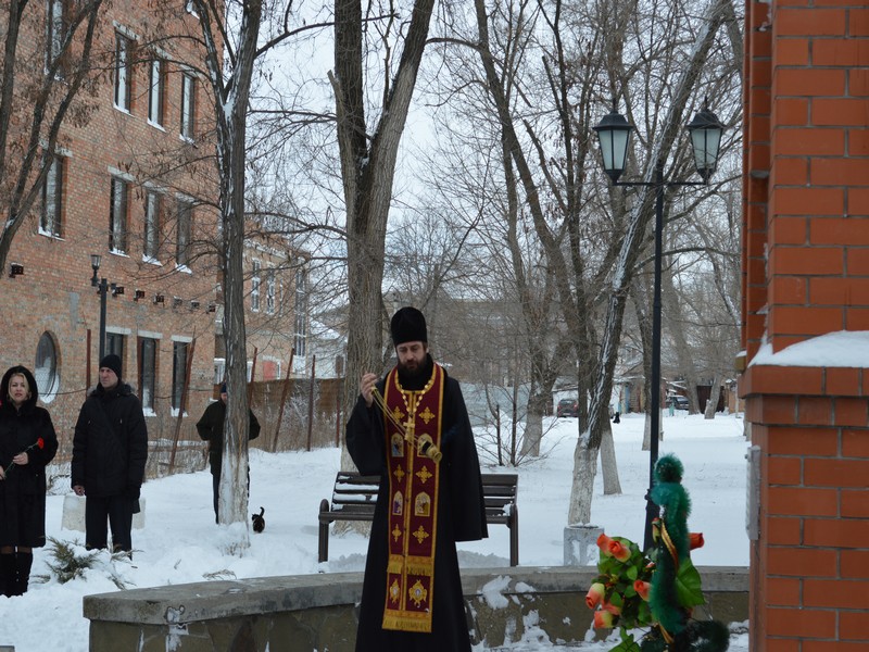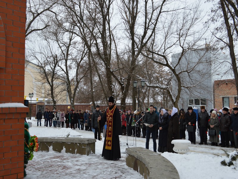 Перед началом мероприятия, благочинный приходов Нижнедонского округа протоиерей Сергий Яценко совершил панихиду по погибшим войнам и обратился к собравшимся со словами назидания.