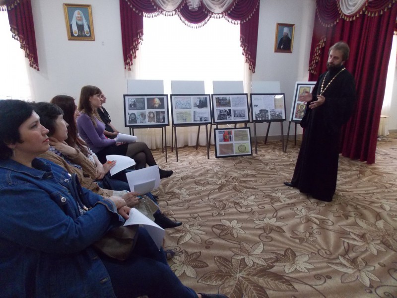 Перед началом отборочного этапа, председатель Отдела религиозного образования и катехизации протоиерей Сергий Яценко, по просьбе членов жюри, провел выставку «Уроки истории 1917-2017. Русь уходящая», посвященная памяти Новомученников и Исповедников Церкви Христовой.