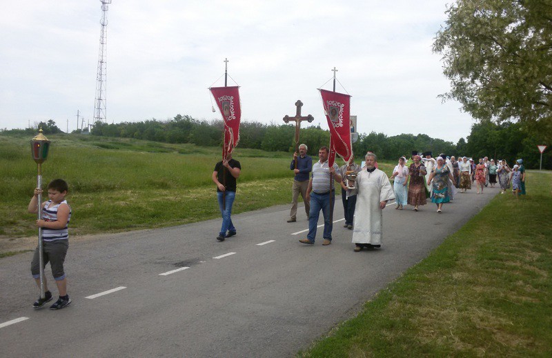 По традиции после праздничного богослужения состоялся Крестный ход к Поклонному Кресту при въезде в населенный пункт.
