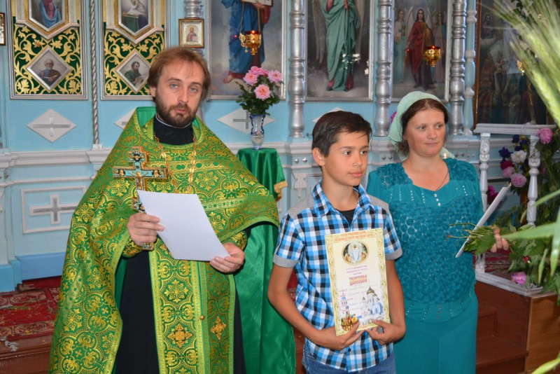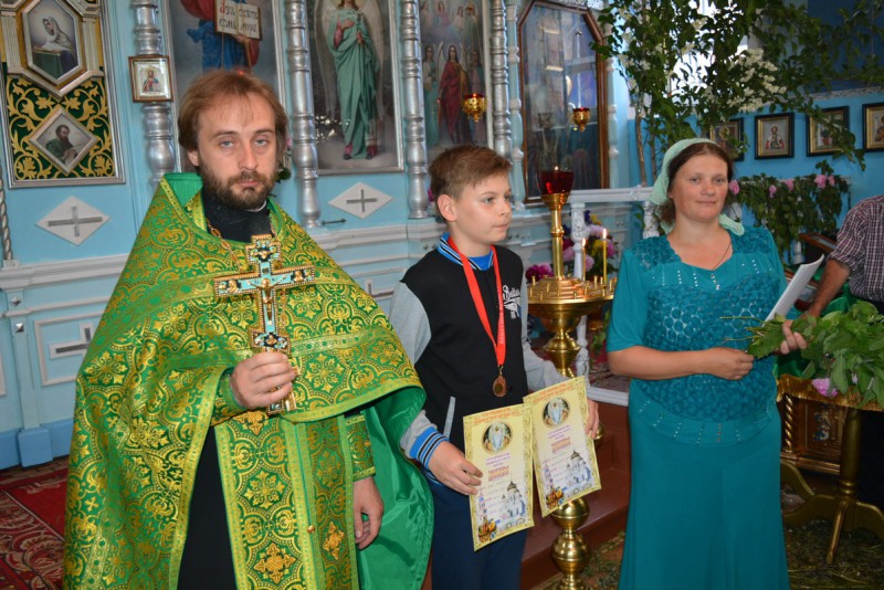 Настоятель прихода протоиерей Сергий Яценко поздравил ребят с великим праздником Святой Троицы, и вручил детям заслуженные награды.