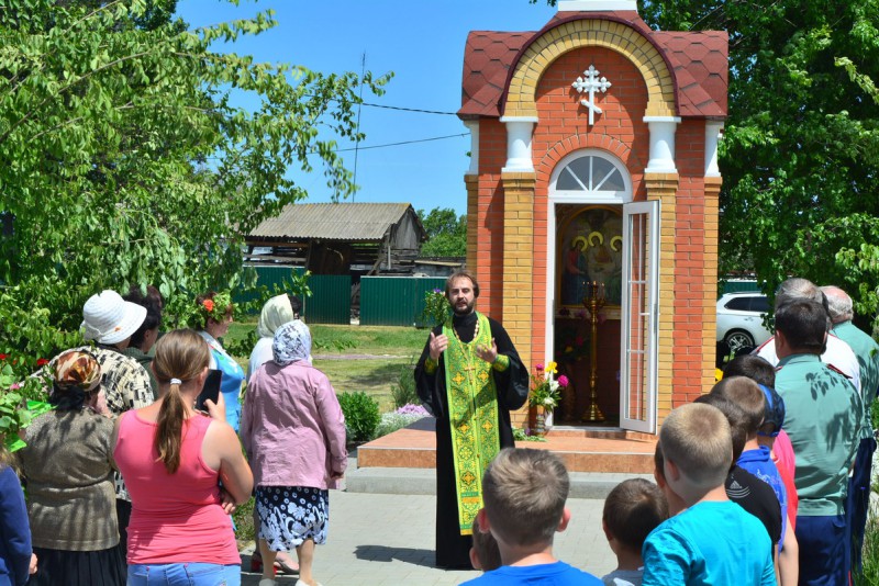 Народные мероприятия начались с общего молебна возле Часовни. Благочинный приходов Нижнедонского округа протоиерей Сергий Яценко обратился с хуторянам со словами поздравления.