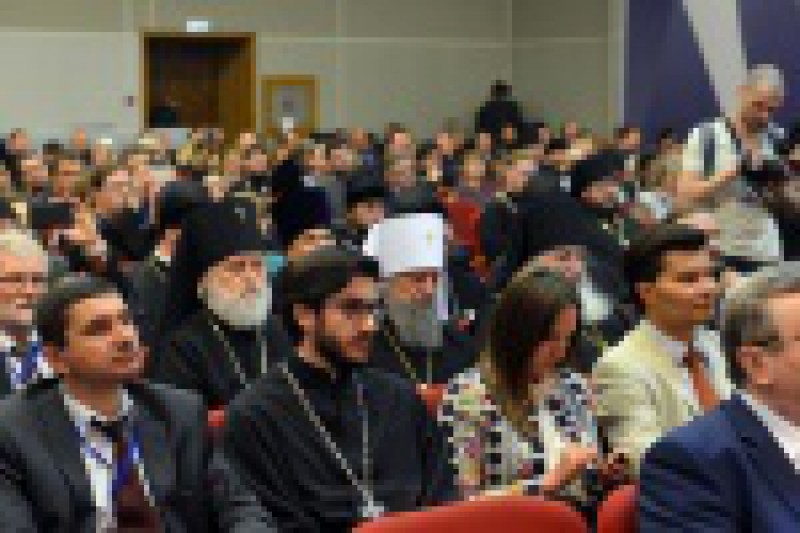 В начале заседания митрополит Волоколамский Иларион огласил приветственное послание Святейшего Патриарха Московского и всея Руси Кирилла.