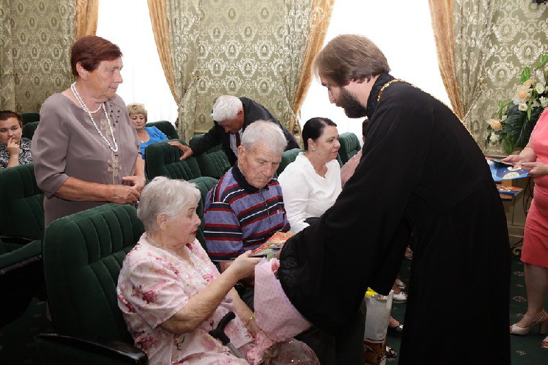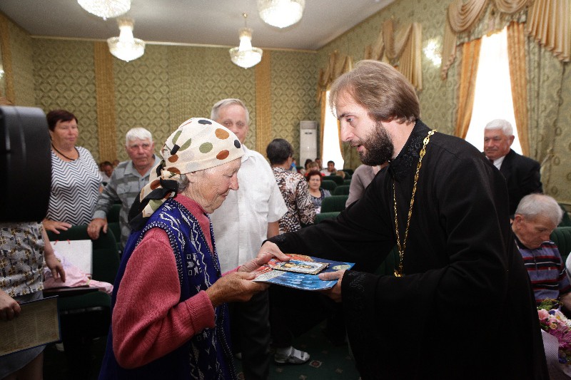 По сложившейся традиции в рамках совместной деятельности Нижнедонского благочиния с органами ЗАГСа, со словами поздравления к присутствующим на празднике обратился благочинный приходов Нижнедонского округа протоиерей Сергий Яценко. Отец Сергий в очередной раз призвал всех ценить духовный мир семьи, быть терпеливыми друг к другу и милосердными. Священник подарил всем юбилярам памятные подарки.