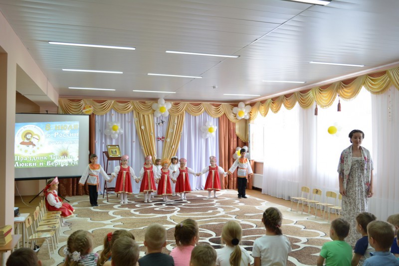 В рамках праздничных событий посвященных Всероссийскому Дню семьи, любви и верности, в новом детском саду №45 «Ласточка» п.Каменоломни прошло детское музыкально-театрализованное представление.