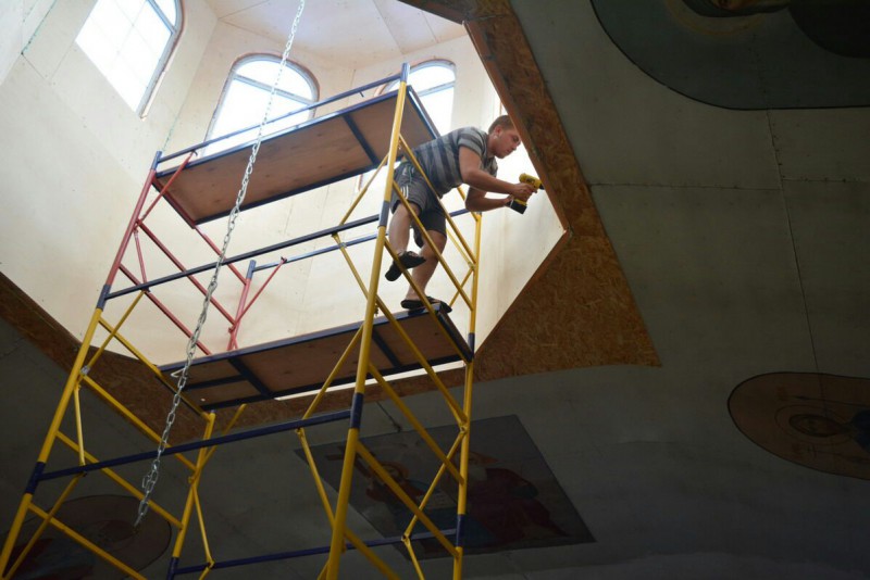Был завершен ремонт двух подкупольных частей кровли.Идет подготовка проекта к их дальнейшей росписи.