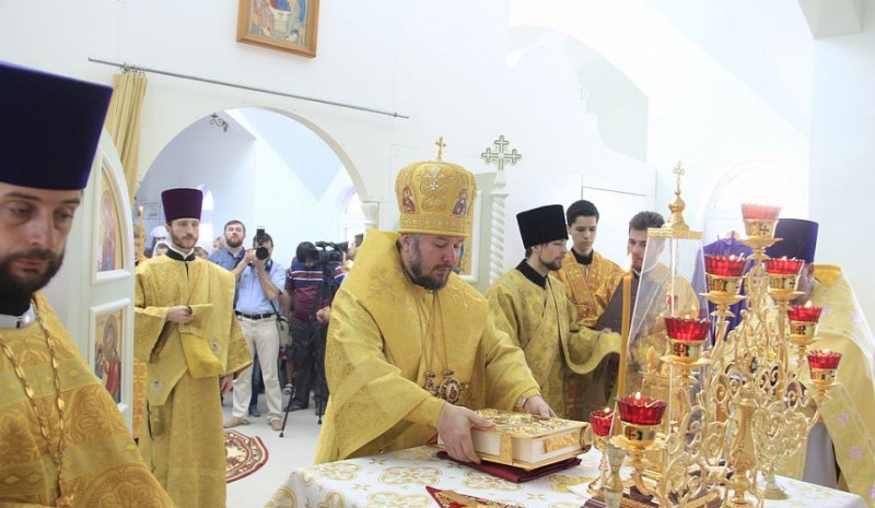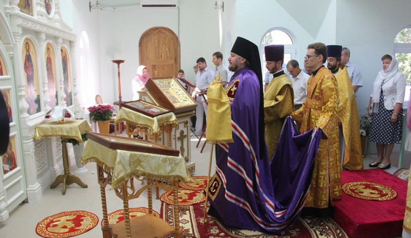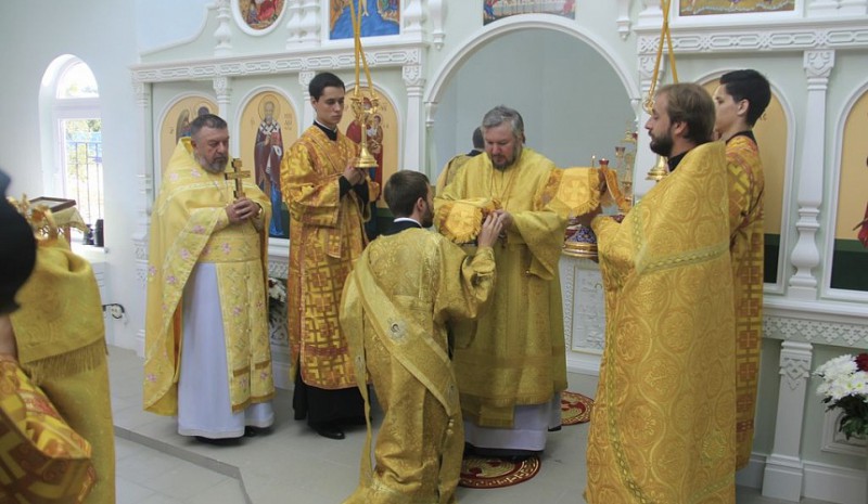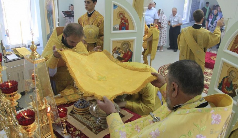 После освящения и совместной молитвы архипастырь совершил Божественную литургию, за которой ему сослужили благочинный приходов Нижнедонского округа протоиерей Сергий Яценко, протоиерей Николай Майдебор, исполняющий обязанности настоятеля храма святого Георгия Победоносца иерей Николай Налеткин, духовенство Покровского кафедрального собора г. Шахты протодиакон Константин Лобов, иеродиакон Флавиан (Васильев).
