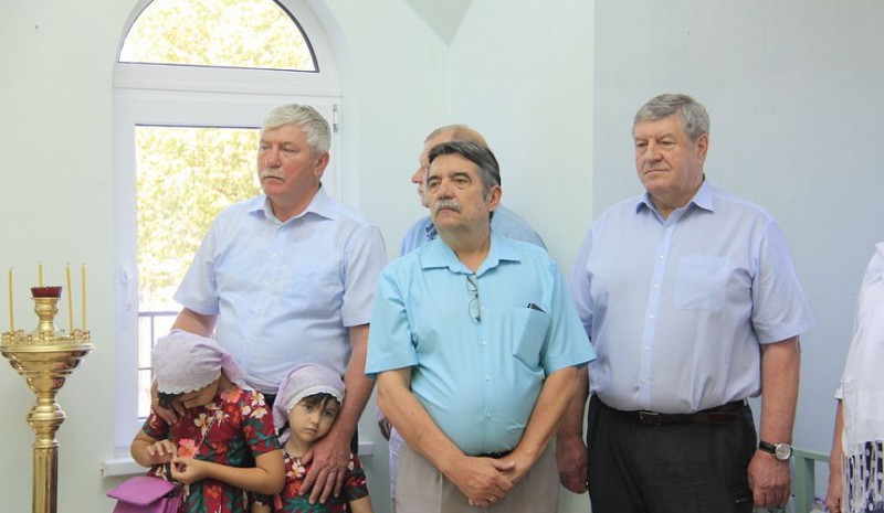 За богослужением молились советник Губернатора Ростовской области, благотворитель храма Вячеслав Николаевич Василенко; глава Октябрьского района Евгений Петрович Луганцев; глава администрации Октябрьского района Людмила Владимировна Овчиева; строители и попечители храма, гости близлежащих поселений, атаманы и казаки Нижнедонского Юрта.