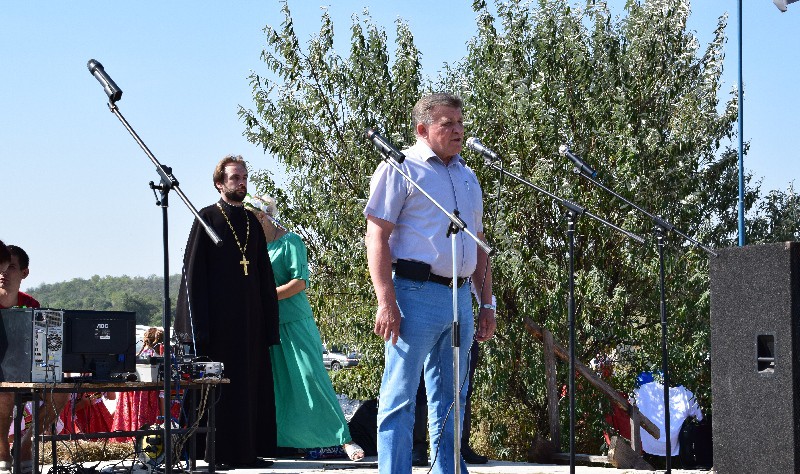 Жителей Коммунарского сельского поселения и гостей фестиваля поздравил с православным праздником и юбилеем Ростовской области Первый заместитель главы Администрации Октябрьского района Н.Д.Бессарабов и Глава администрации Коммунарского сельского поселения - Атаман ХКО «Староковыльное» А.Ю.Точеный.