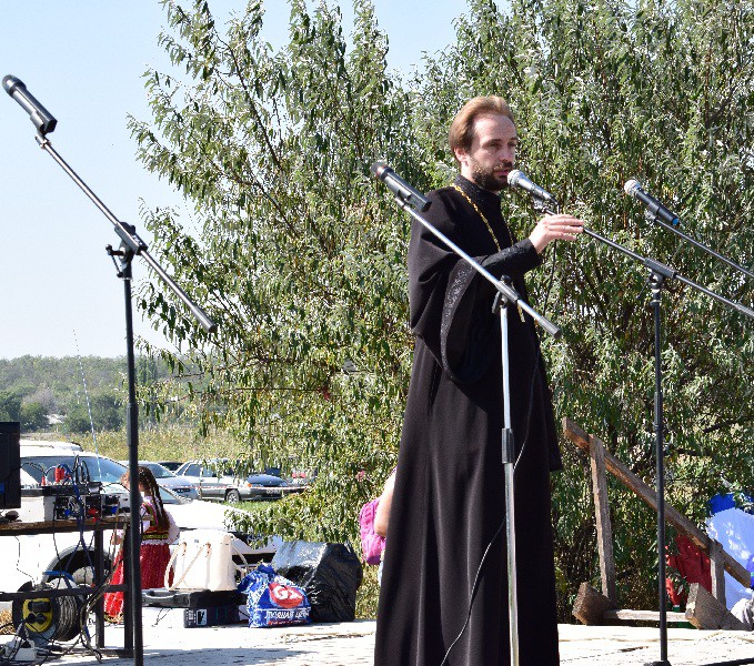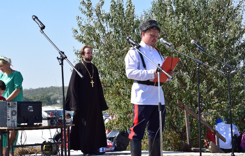 Благочинный приходов Нижнедонского округа протоиерей Сергий Яценко обратился к собравшимся с напутственным словом, рассказал о вспоминаемом событии, поздравил всех с праздником и благословил начало казачьего фестиваля.