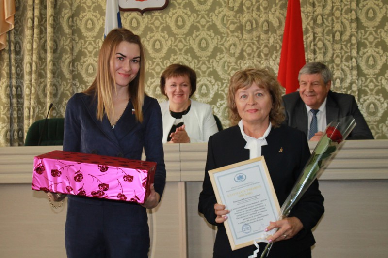 Глава Администрации Октябрьского района Л.В.Овчиева за плодотворную работу по обучению и воспитанию учащихся, значительный вклад в развитие муниципальной системы образования и в связи с профессиональным праздником вручила Благодарственные письма и приветственный адрес главы Администрации района педагогическим работникам и ветеранам педагогического труда, имеющих звание "Заслуженный учитель РФ", а так же победителям муниципальных и региональных конкурсов.