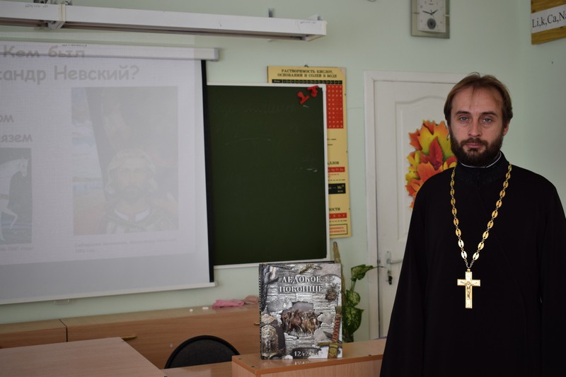 В рамках реализации проекта с целью сохранения военно-исторического и культурного наследия нашего народа, знакомства старшеклассников с жизнью святого князя Александра Невского, популяризации его имени и раскрытие значения этой исторической личности для молодого поколения, в школе №23 п.Красногорняцкий состоялся открытый урок.