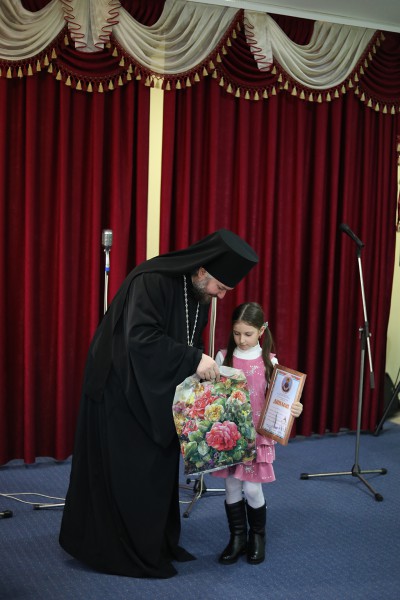 По благословению епископа Шахтинского и Миллеровского Симона, в Шахтинской епархии уже третий год проходит детский творческий конкурс «Божий дар». После концерта архиерей вручил победителям конкурса дипломы и заслуженные подарки.