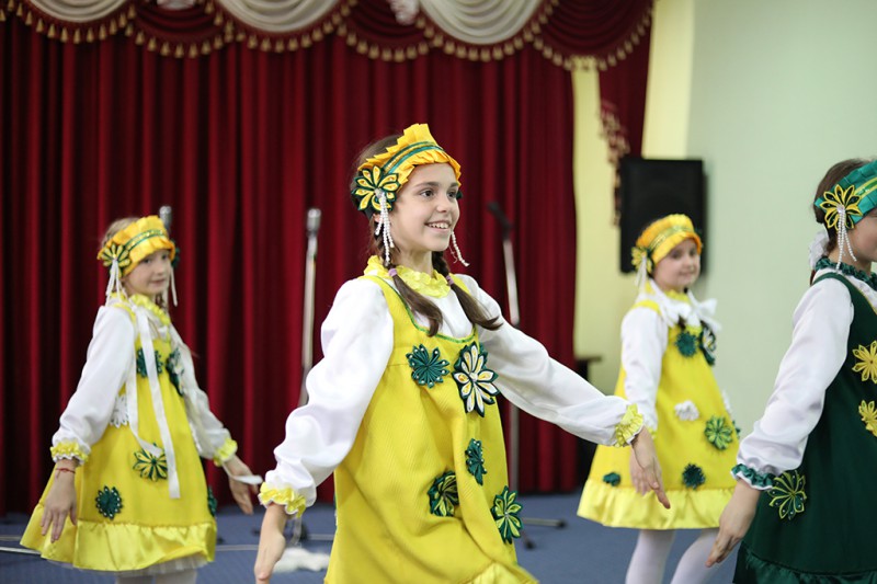 Яркими творческими выступлениями праздничный концерт продолжили Детский архиерейский хор и солистки хора, исполнившие патриотические песни, хореографический ансамбль «Бриллиант», вокальная студия «Барбарис», Школа искусств г. Шахты, казачье молодежное объединение «Донцы», показавшее мастерство фланкировка и ансамбль православной народной песни «БлагоДать».
