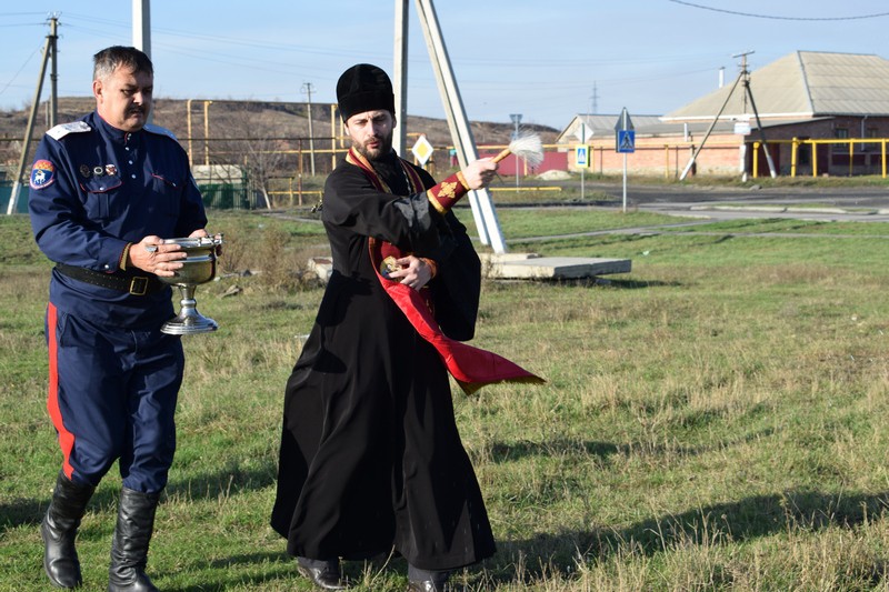 Благочинный приходов Нижнедонского округа протоиерей Сергий Яценко в сослужении с настоятелем храма Вознесения Господня слободы Красюковской Октябрьского района протоиереем Николаем Мельниковым совершил молебен перед началом всякого доброго дела и освящение места для дальнейшего строительства нового детского сада в слободе Красюковской.