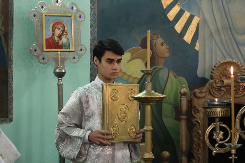 По традиции храмового праздника богослужение началось с молебна, соборно был совершен акафист небесному покровителю и освящена вода. Далее началась Божественная литургия. Многочисленные прихожане в этот день причастились Святых Христовых Таин. В богослужении приняли участие казаки Нижне-Донского юрта и сестры милосердия Марфо-Мариинского Сестричества действующего при храме.