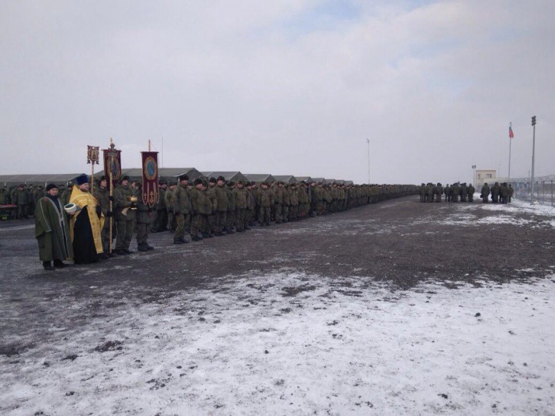 Перед началом смотра, помощник командира по работе с верующими военнослужащими протоиерей Николай Севрюгин совершил молебен.