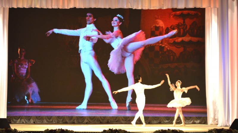В подарок к юбилею Октябрьского района от Ростовского государственного музыкального театра на сцене выступила Прима-балерина Ростовского государственного музыкального театра, Заслуженная артистка России Е. Мислер и солист балета театра А. Загретдинов.