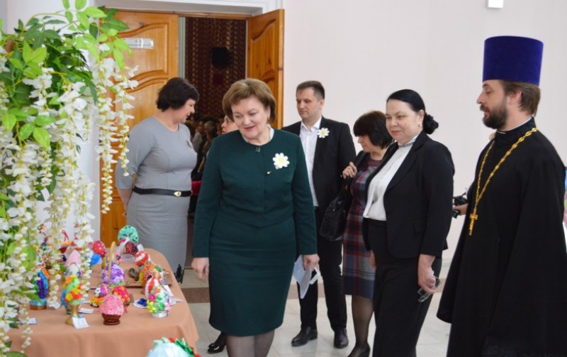 Перед началом торжественного мероприятия, все желающие смогли посмотреть выставку работ участников регионального этапа Международного конкурса-фестиваля декоративно-прикладного творчества «Пасхальное яйцо 2018», прошедшего в Шахтинской епархии в рамках IV Открытого епархиального (регионального) фестиваля православной культуры и творчества «Пасха Красная» (номинация «Декоративно-прикладное искусство»). Вниманию участников чтений, также была представлена выставка детских художественных работ, победителей районного конкурса «святой благоверный князь Александр Невский – опора земли русской»,